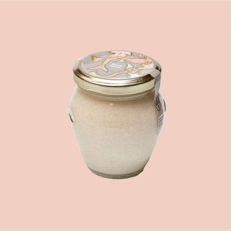 Tarama exclusivement élaboré avec des poches entières d’œufs de cabillauds d’Islande légèrement fumés.