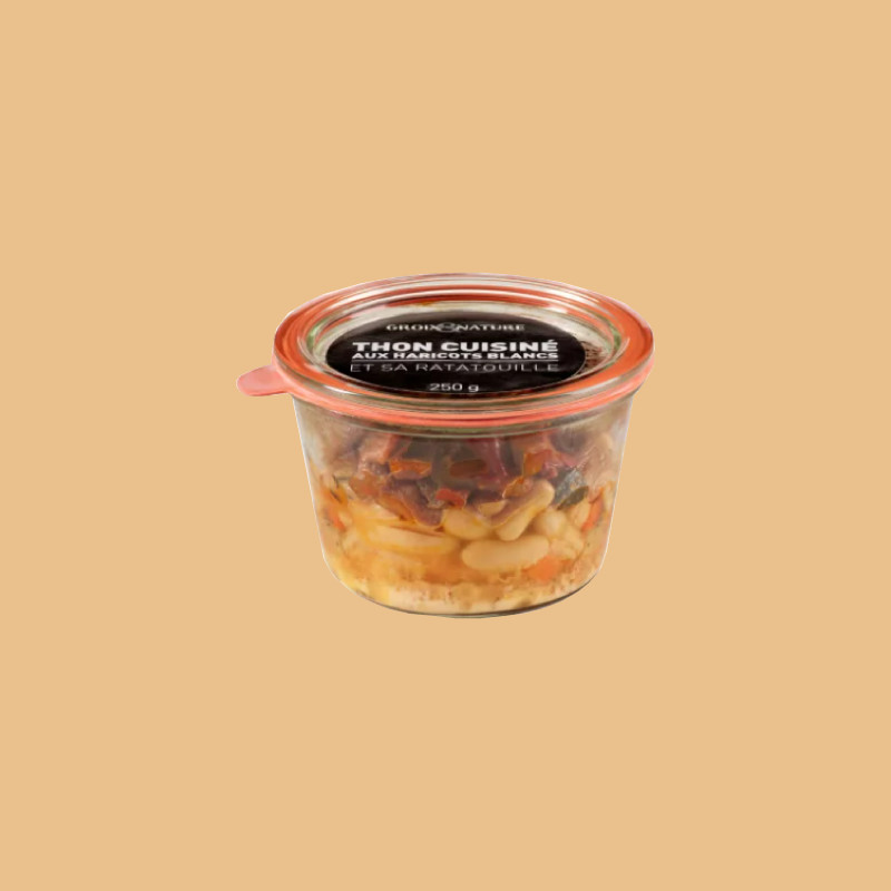 Thon cuisiné aux haricots blancs et ratatouille.